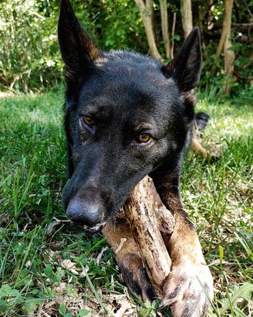 She is grand-daughter of the excellent producer Leon von der Staatsmacht. Sabba also excels in protection work with a natural instinct, her grips are deep and full. She hits the decoy hard and shows just as much power as the males do.