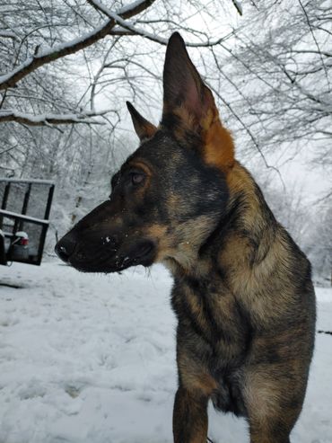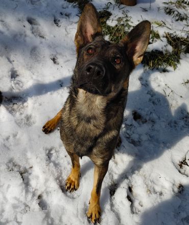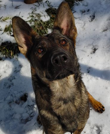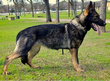Sabba is a direct Czech import with beautiful soft dark sable coat. She displays a nice protective behavior as she is alert to strangers while showcasing loyalty and love to her family as her first priority. She is confident yet remains dog neutral and shows no aggression. She has a high ball and food drive which she loves to work for. The ball is her favorite reward during training sessions. Her obedience is always flashy and on point.