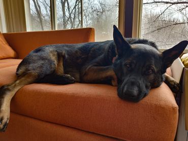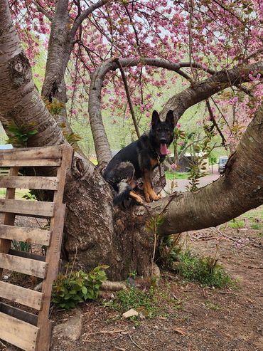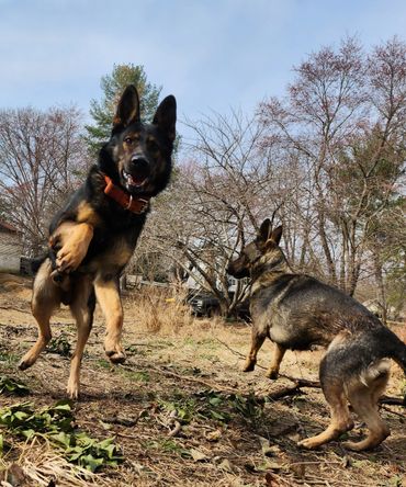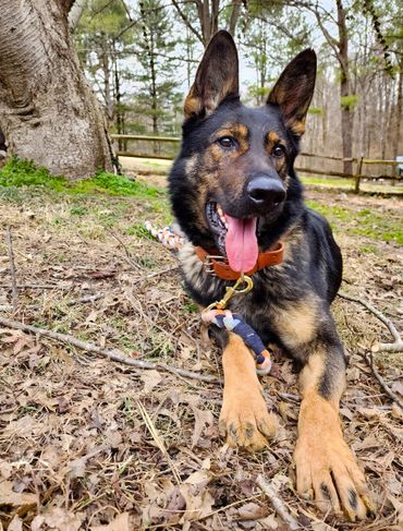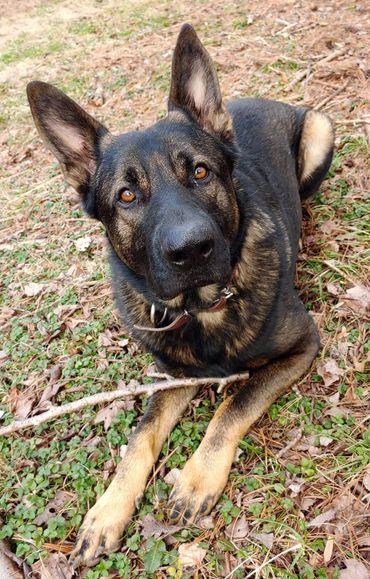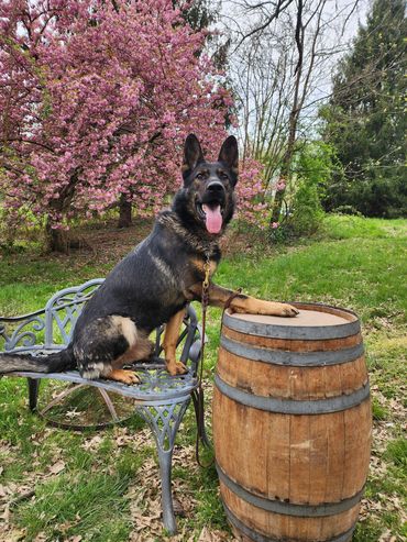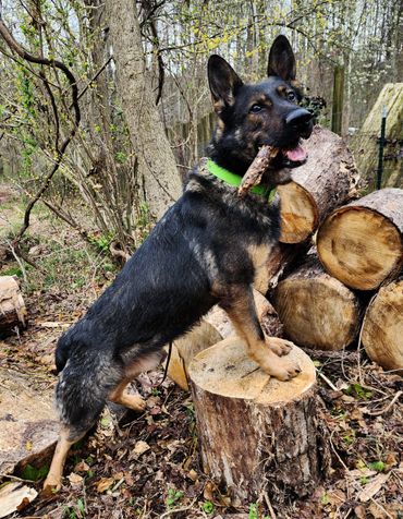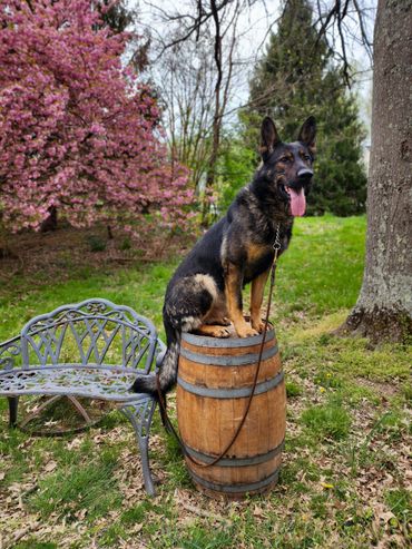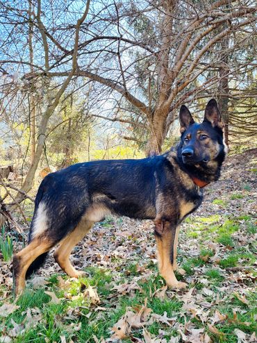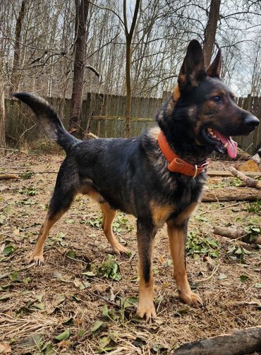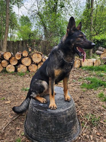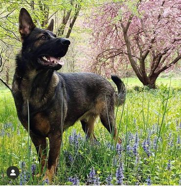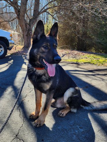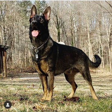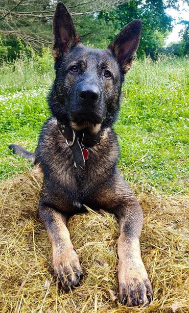 His pedigree is saturated with titled and proven working line German Shepherds. His coat is a rich dark and red sable which he lends to his offspring. Though high drive Redd has the ability to settle in the home and relax in that environment.